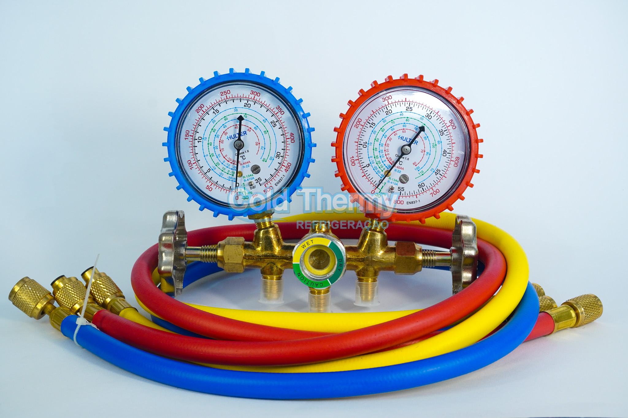 O Manifold Hulter é a ferramenta definitiva para o técnico que trabalha com sistemas Inverter. Desenvolvido para suportar as altas pressões dos gases R-410A e R-32, ele conta com manômetros protegidos, visor de líquido central e corpo em latão forjado. Este conjunto completo inclui mangueiras reforçadas e oferece máxima precisão e segurança para processos de carga, vácuo e diagnóstico em sistemas de refrigeração e climatização.